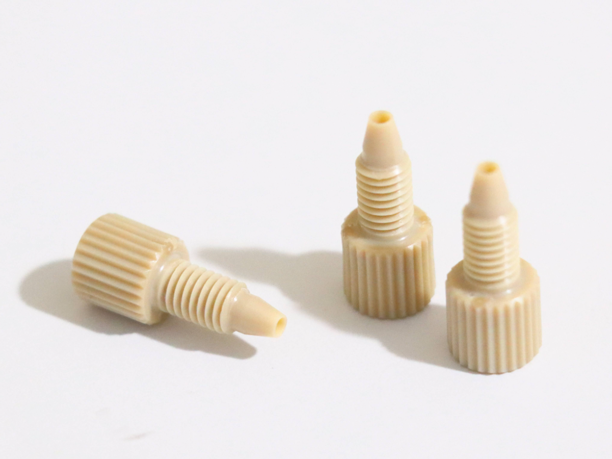 品名:PEEK接头,外径:1/16",材质:PEEK,规格:螺纹规格10-32,描述:圆头 手拧式