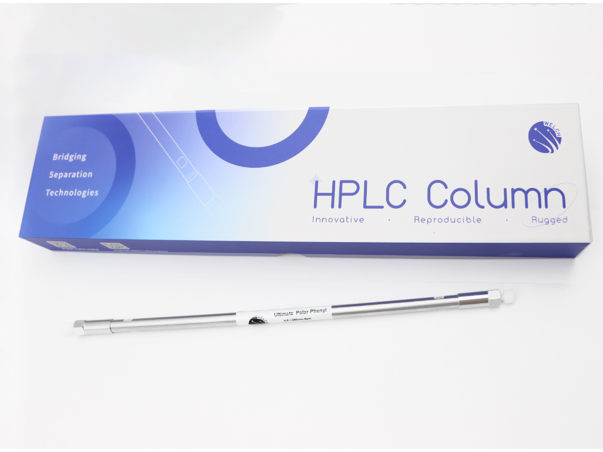 Ultimate Polar-Phenyl色谱柱将极性官能团嵌入苯基丙基键合相中,使得键合相在流动相中有机相比例极低时(甚至100%水流动相)时也能被水润湿,不会发生相塌陷,独特的固定相键合、双封尾技术,使峰形对称性更好,对芳香族化合物有优良的分离选择性能,与XB-Phenyl相比,增强了极性化合物的保留能力和选择性。