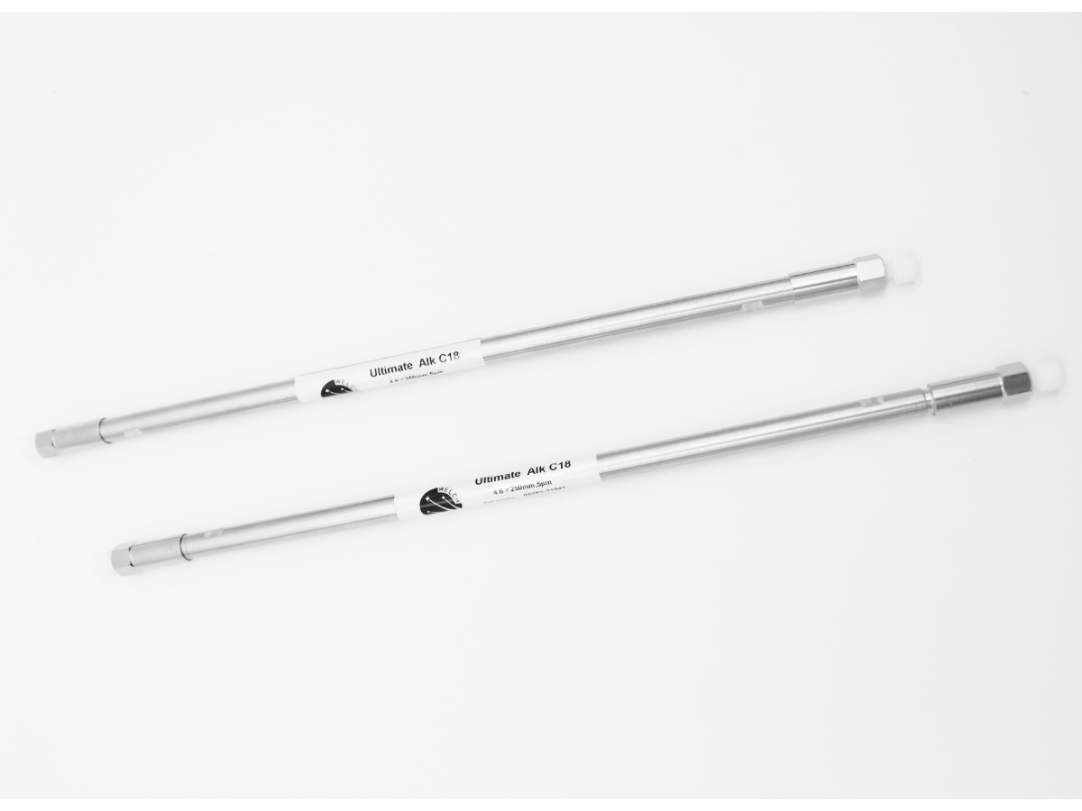 Ultimate ALK-C18是月旭科技研发的新一代的C18色谱柱,该色谱柱在高纯硅胶表面嵌入了亲水性基团,使其具有亲水作用的性质。亲水性基团取代了大量的硅醇基位点,能有效防止碱性物质与硅醇基的相互作用。Ultimate ALK-C18色谱柱由于嵌入了亲水性基团,故而其选择性与传统的反相C18等色谱柱有明显的差异,是色谱工作者进行方法开发的必备工具。