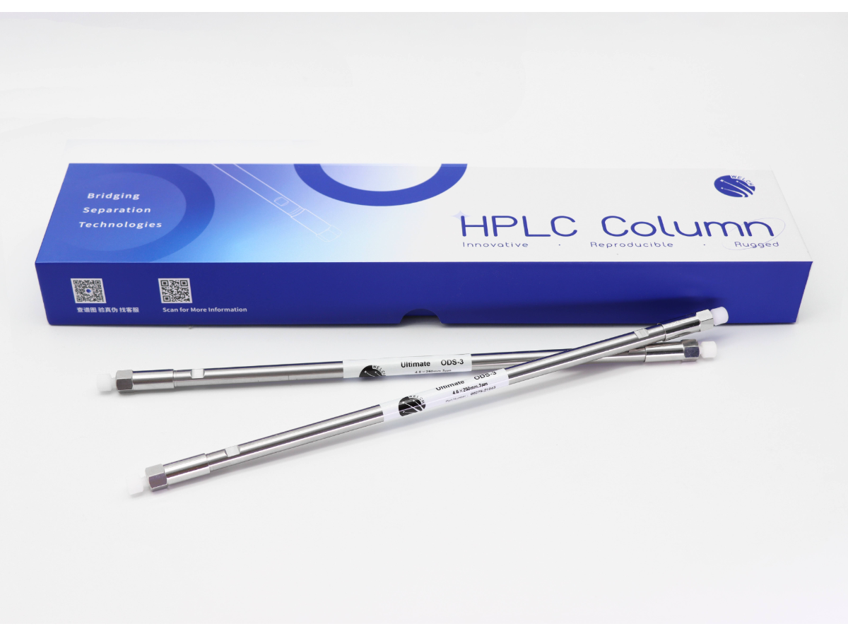 Ultimate ODS-3是一款通用型的、耐受高比例水相的十八烷基反相色谱柱填料。其填料是在超高纯度球形硅胶上键合通用性的十八烷基官能团,并进行严格的亲水性端基封尾修饰所得。无论是对碱性化合物还是酸性化合物吸附都较小,使得化合物在色谱柱上具有理想的峰形。其填料可以与100%水相兼容而不产生固定相塌陷,适合绝大多数化合物的分离分析。