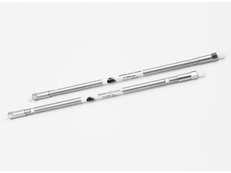 Ultimate Amide色谱柱是采用超纯硅胶为基质的酰胺类亲水色谱柱,属于更常用的HILIC色谱柱之一,可以非常迅速并有效地分离糖类、多肽、以及低分子量的极性药物。该色谱柱的工艺采用可控的化学键合技术,确保了填料批次之间具有良好的重现性。