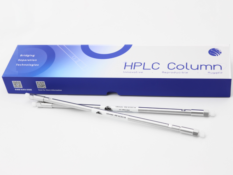 混合键合相(Mixed Mode Phase)作为一种新型填料,与传统单一键合相有不同选择性,具有疏水作用和离子交换作用双重机理,是未来液相色谱柱行业发展的趋势之一。 ▪ 高纯球形多孔硅胶为基质。 ▪ SCX和C18混合键合(4:1)。 ▪ 可以用于分离分析疏水性及离子化合物。 ▪ 分析未知化合物,尤其是代谢产物研究的理想选择。 ▪ 国内首款混合键合相色谱柱。